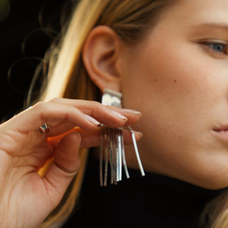 Ein goldener Spätsommertag in der Nähe von Wien: Konstanze Fulmek, Geschäftsführerin von OTTO FEILER, hat sich bewusst für diese ungewöhnliche Kulisse entschieden. Auf einem Feldweg, flankiert von Strohballen, stehen zwei alte Porsche – Symbole von Geschwindigkeit, Präzision und Geschichte. Davor trägt Konstanze elegante Silberschmuckstücke aus der neuen OTTO FEILER Kollektion, deren kühler Glanz im Sonnenuntergang leuchtet.